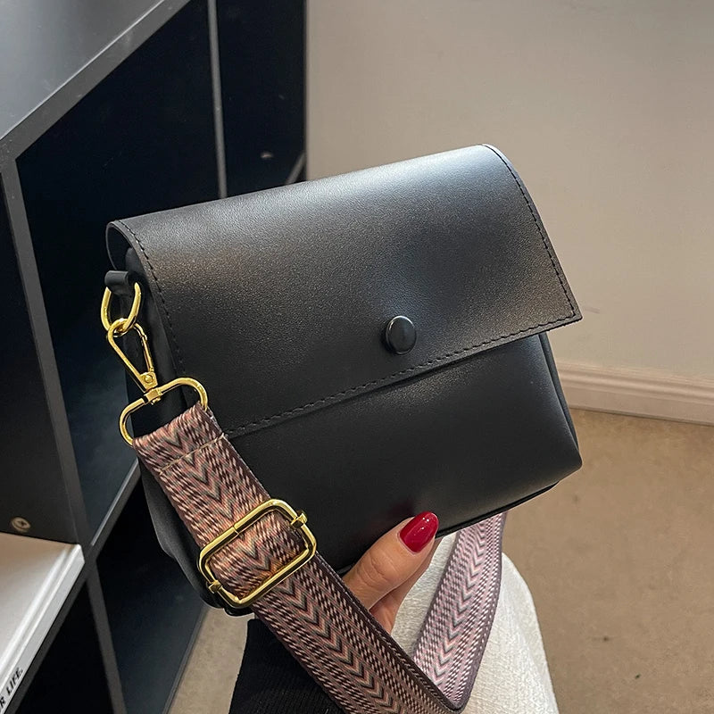 Women Messenger Crossbody Bag Soft PU Handbag Large Capacity Wide Shoulder Strap