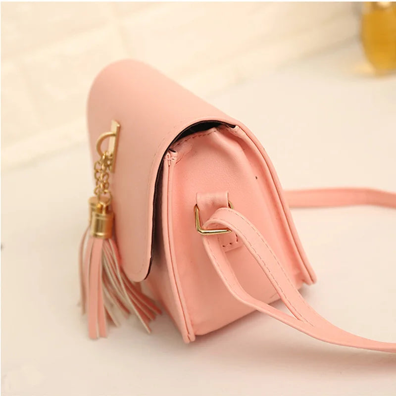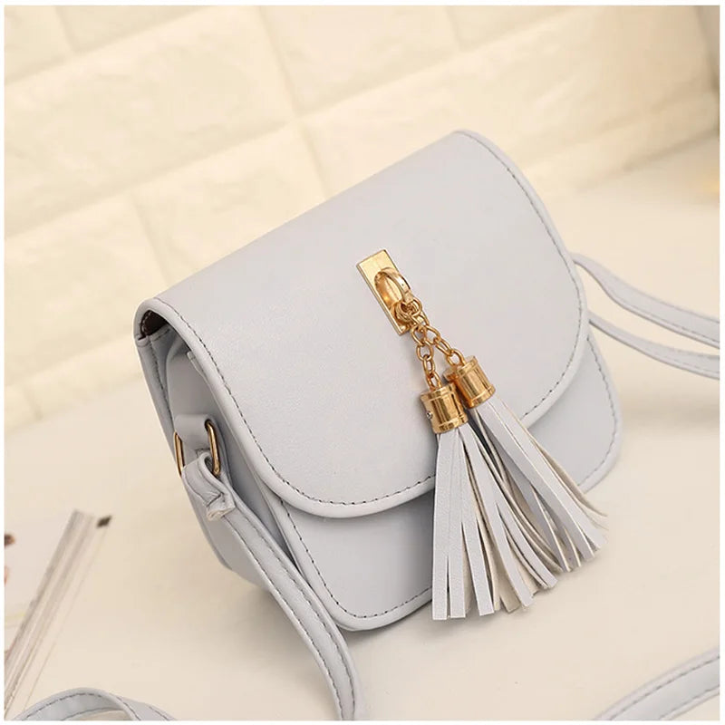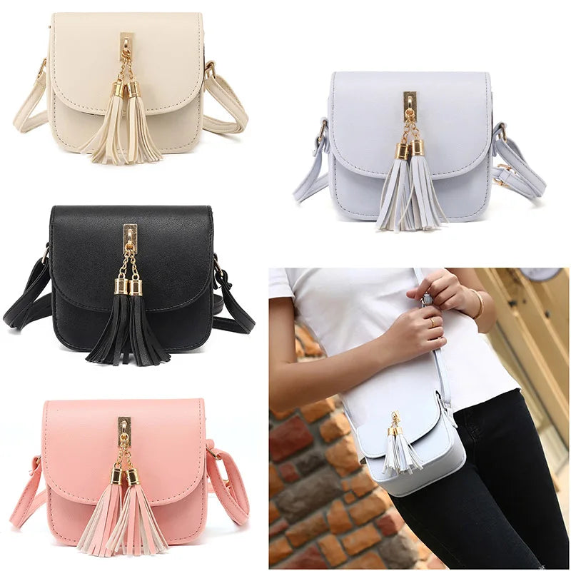 Women Mini Chains Bag Tassel Handbag Flap PU Leather Messenger