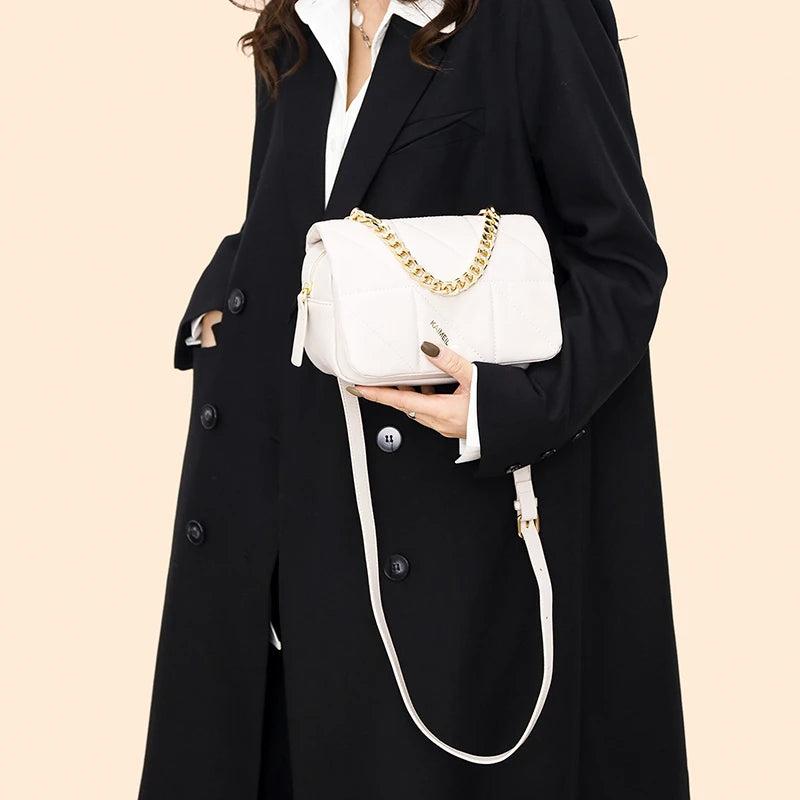 This small crossbody bag is made of high-quality nylon material, featuring a satchel style design with a metal chain strap for easy carrying. Perfect for daily use or special outings.