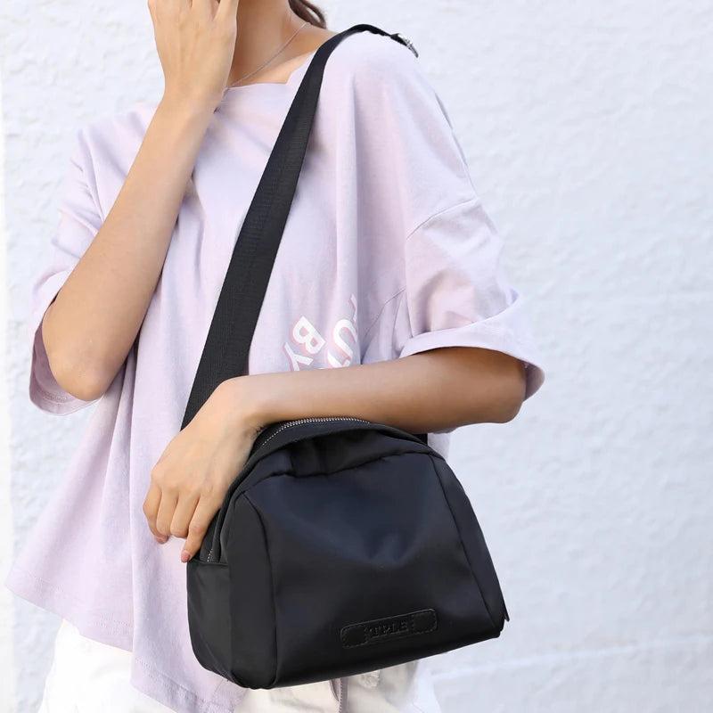 This versatile bag serves as a shoulder bag, waist pack, and handbag for women. Made from durable nylon material.