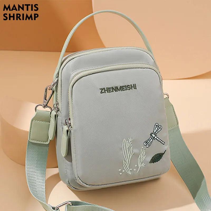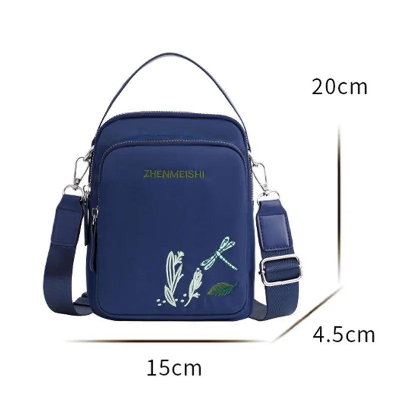 This women's messenger bag is made of high-quality nylon material, perfect for travel and everyday use. It features stylish embroidery and a convenient crossbody design.