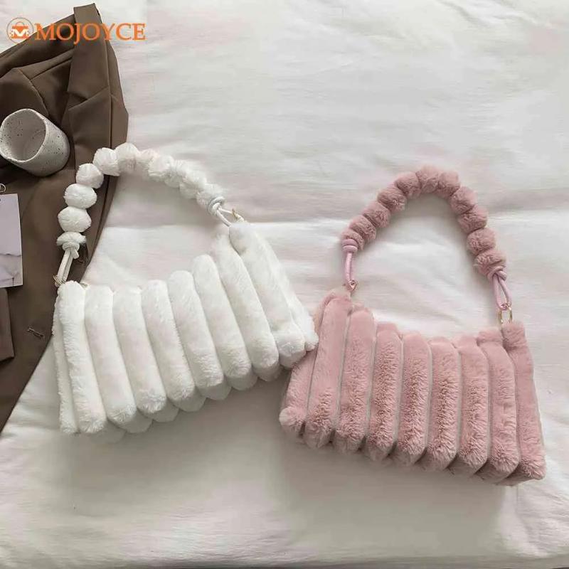 Women Plush Shoulder Bags Winter Faux Fur Handbag Large Capacity