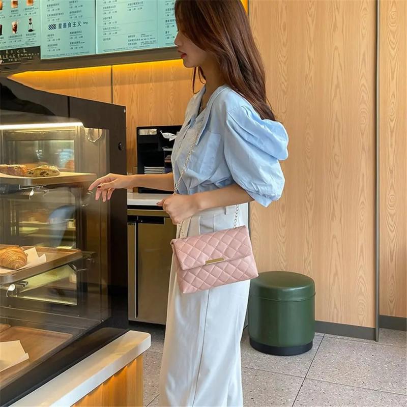 This stylish shoulder bag is made of high-quality PU leather with a chain strap. It's perfect for everyday use and adds a touch of elegance to any outfit.