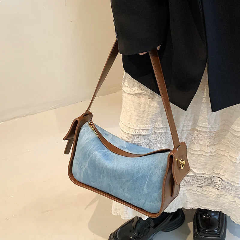 Women PU Leather Handbag Large Capacity Denim Shoulder Bags Zipper Clutch
