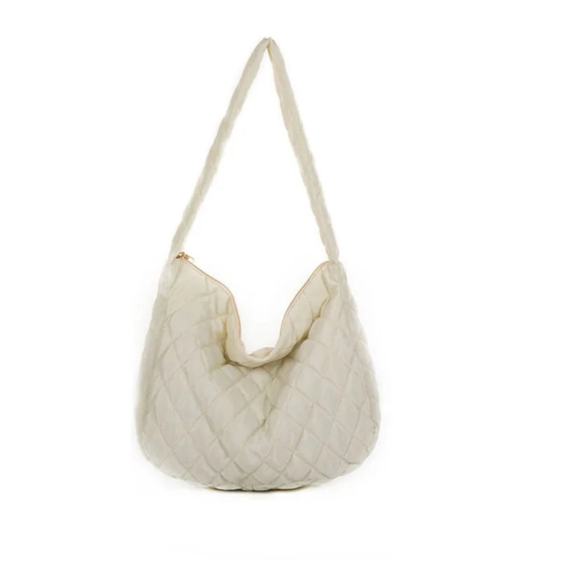 Women Puffy Handbag Winter Quilted Tote Bag Plaid Shoulder Bags