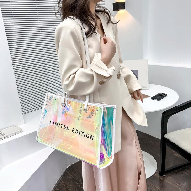 Women PVC Clear Shoulder Bag Summer Laser Letters Print Handbag