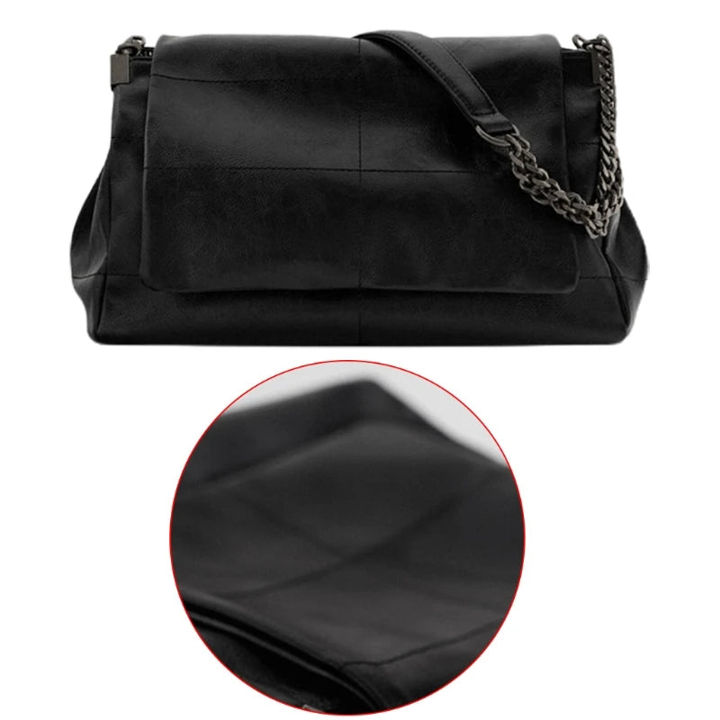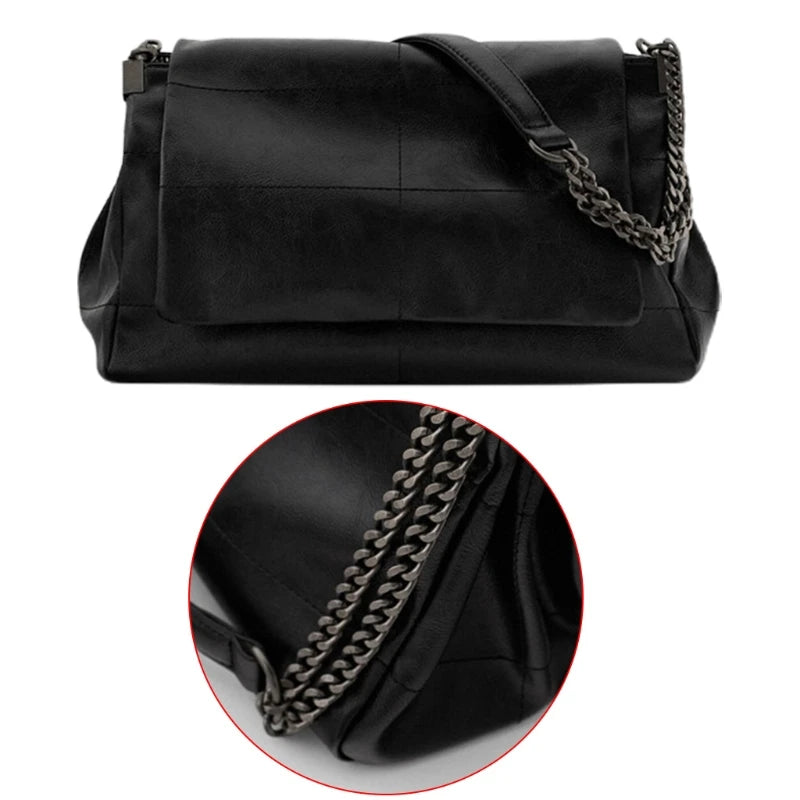 Elevate your style with this chic faux leather shoulder bag featuring a chain strap. Perfect for any occasion, this bag is both functional and stylish.