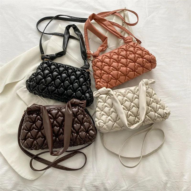 Women Ruched Shoulder Bags High Leather Crossbody Bags Female Handbags And Purse