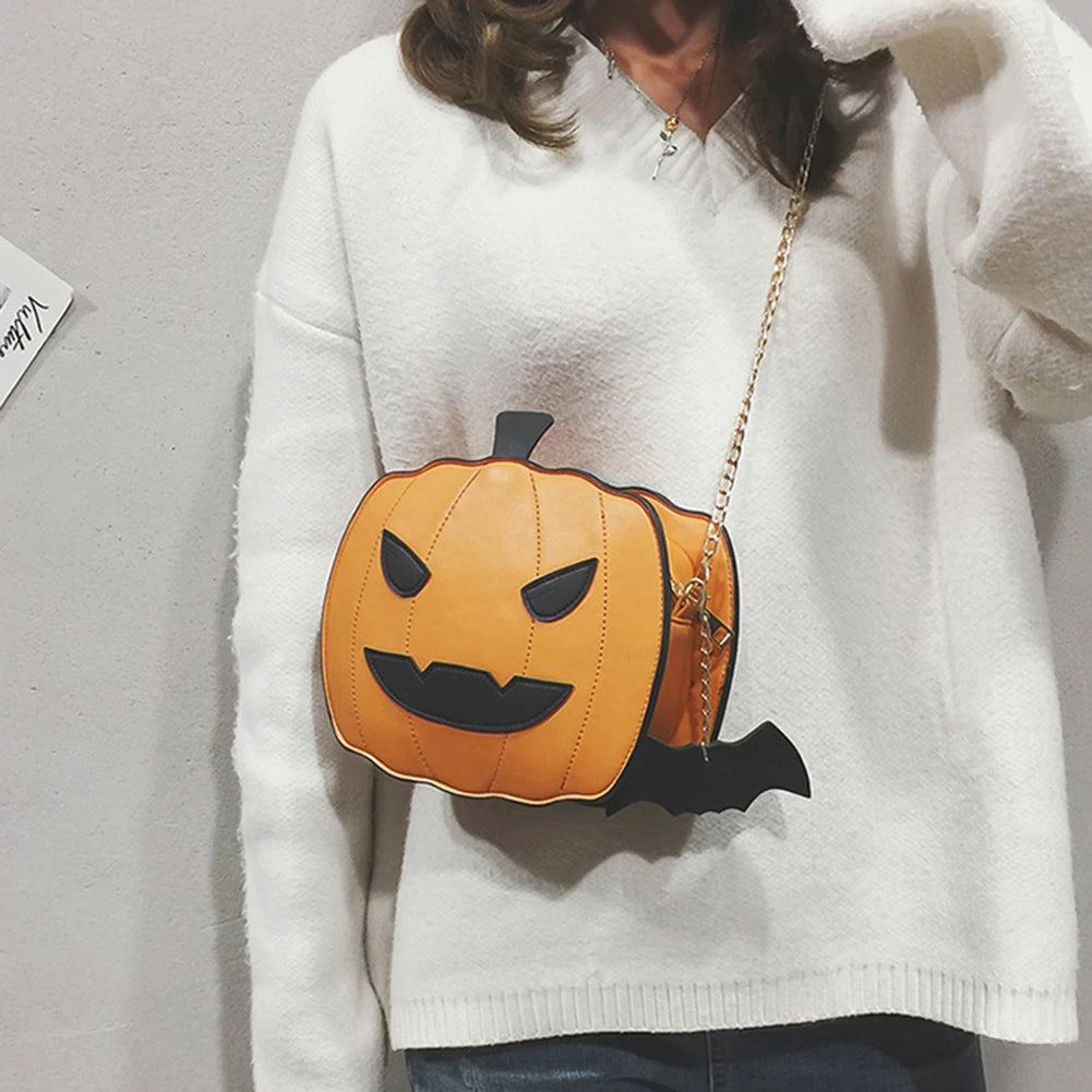 Women Shoulder Bag Leather Creativity Halloween Easter Pumpkin Lamp Handbags