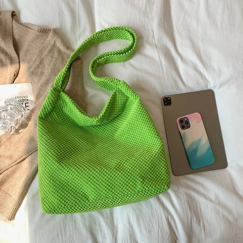 Stay stylish and organized with this autumn winter plush shoulder bag. It features a large capacity for your shopping needs and a solid design that is perfect for school or casual outings.