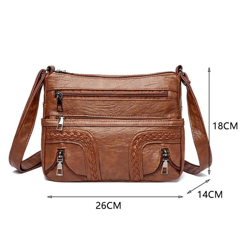 Women Shoulder Bag PU Leather Crossbody Bag Multi-Pockets Messenger Bag