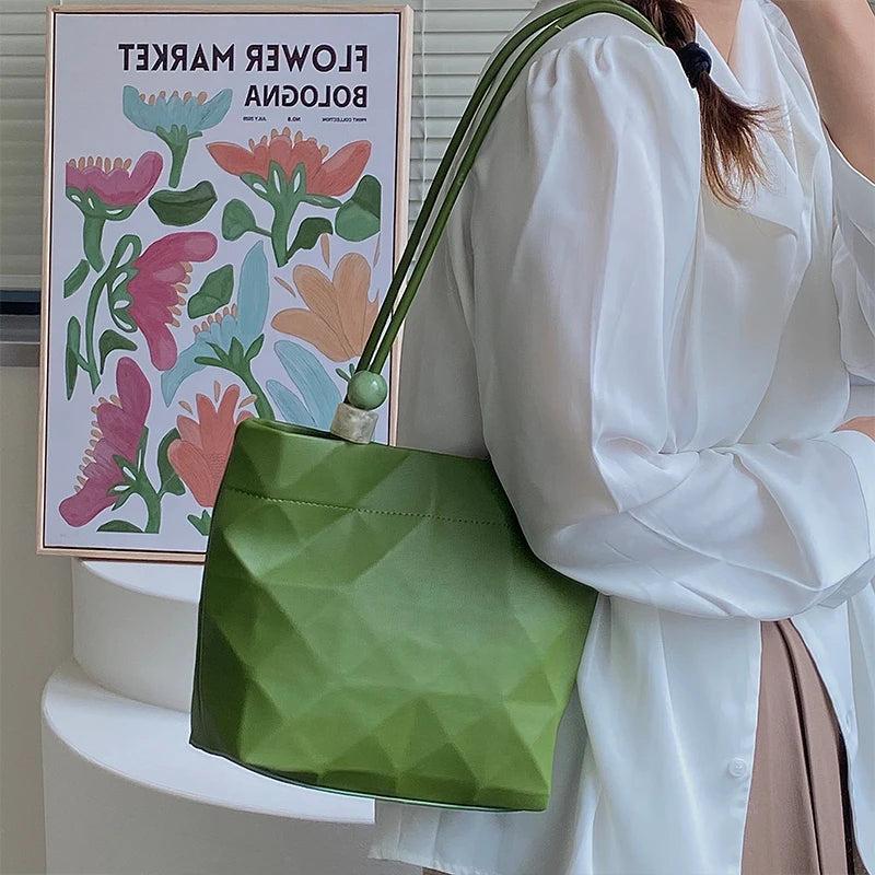 Women Shoulder Bag Solid Small Tote Underarm Bags Female Beaded Armpit Bag