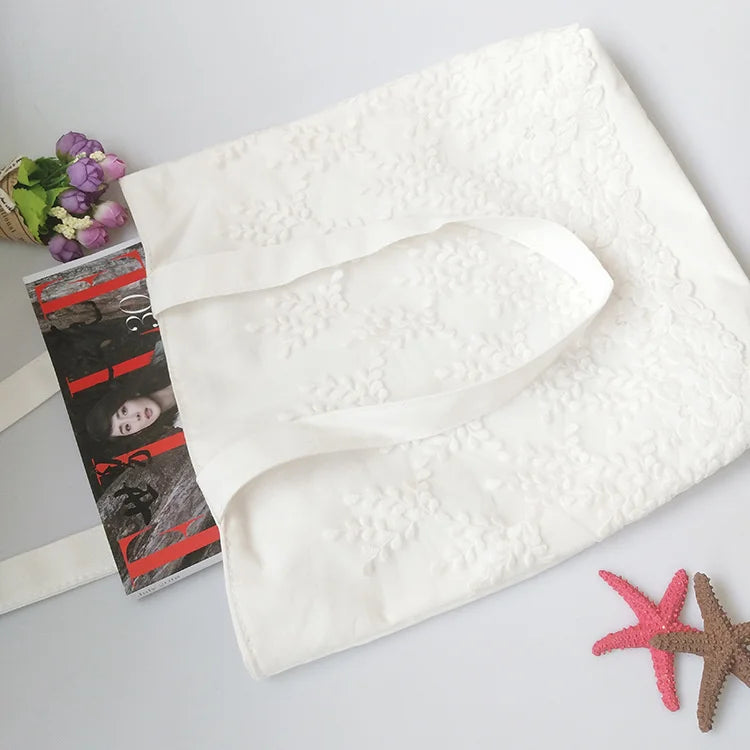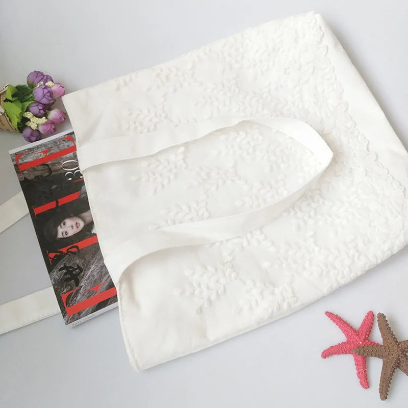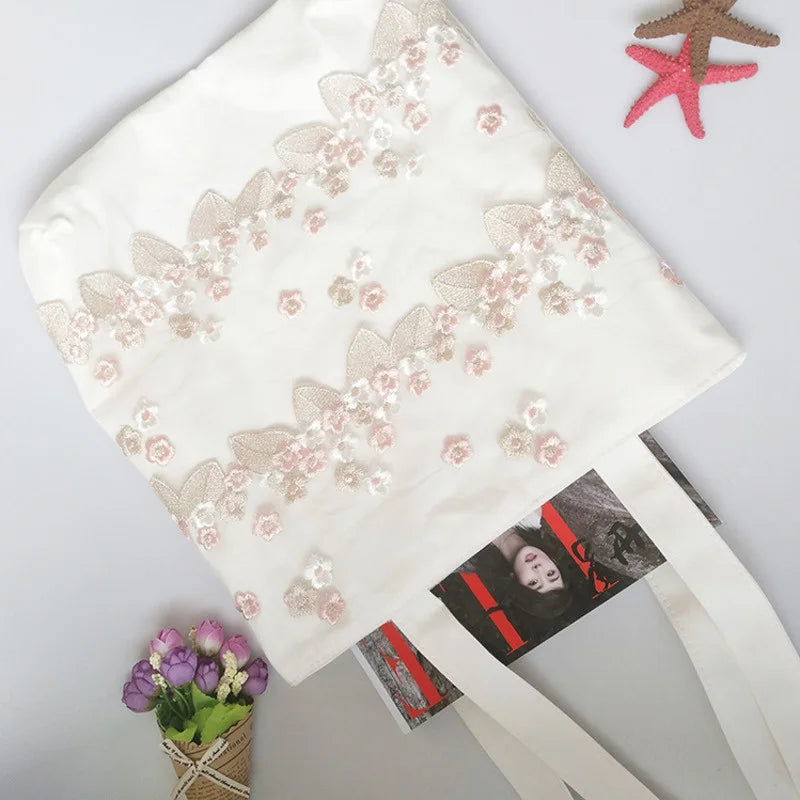Women Shoulder Bags Lace Floral Embroidery Handbags Canvas Bag