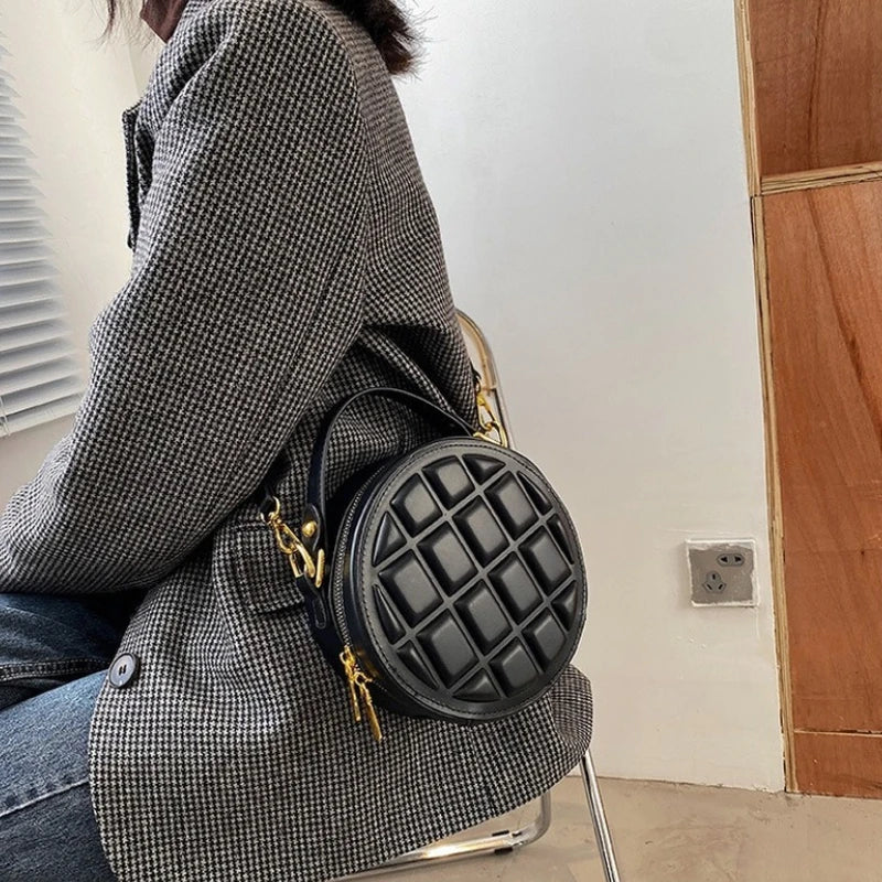 This stylish handbag is perfect for women who want a unique accessory. It features a rhombus chocolate round cake design that is both fun and fashionable.