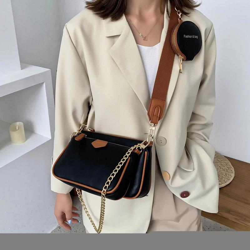 Women Small PU Leather Shoulder Bag Three in One Handbags