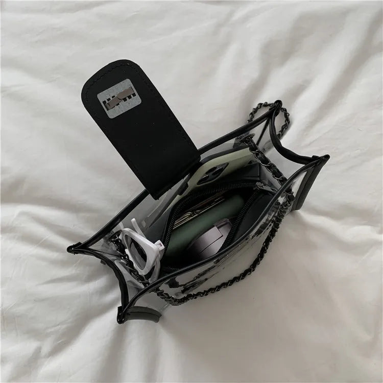 Women Small Shoulder Bag Transparent Chain Messenger Bag