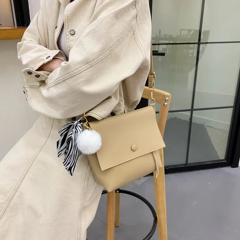 This women's small square bag is a stylish choice for everyday use. Made of PU leather, it features a retro design with a small hair ball charm. The shoulder bag is perfect for carrying essentials while on the go.