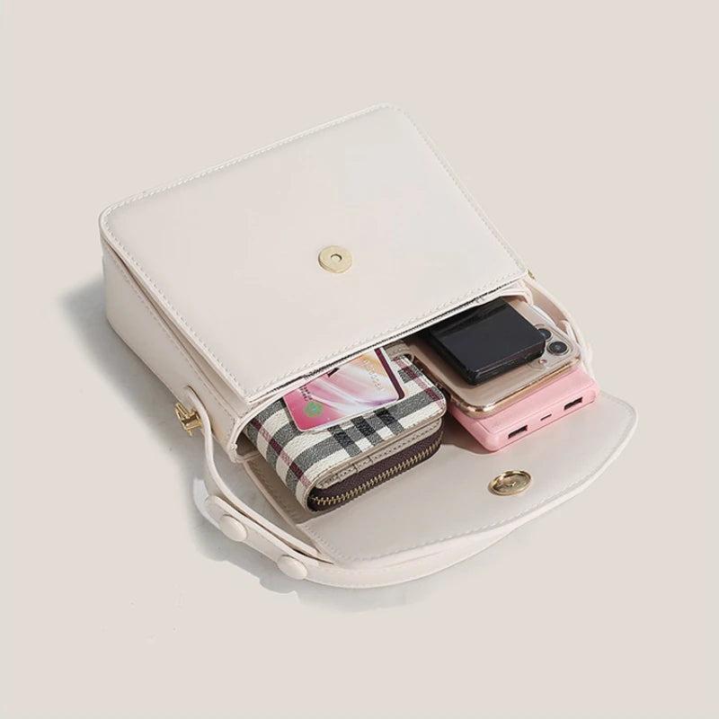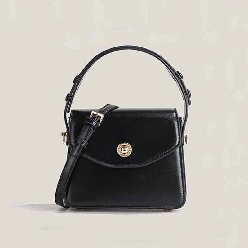 This small square handbag is made of high-quality PU leather, perfect for all occasions. It features a top handle and a detachable shoulder strap for versatile wear.