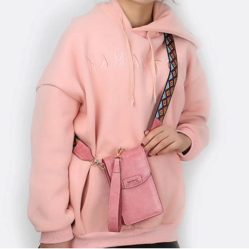 This stylish handbag is perfect for on-the-go women. Made of high-quality PU leather, it features a wide strap and can be worn as a crossbody or shoulder bag. Ideal for carrying your cellphone and other essentials.