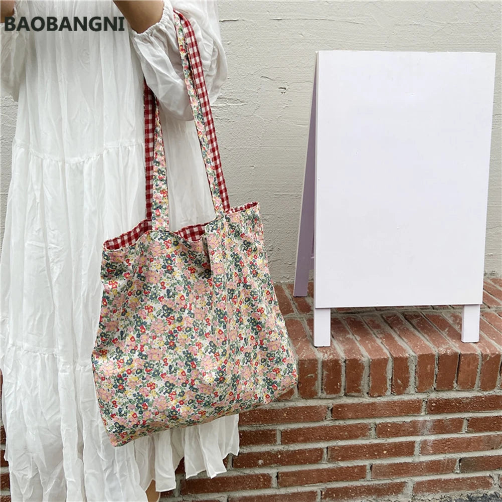 Women Spring Floral Plaid Print Handbags Casual Shoulder Bags