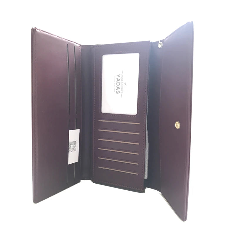 This women's wallet is made of high-quality leather and features a 3-fold design. It has multiple card slots and compartments for organizing your money, cards, and phone. Perfect for everyday use or special occasions.