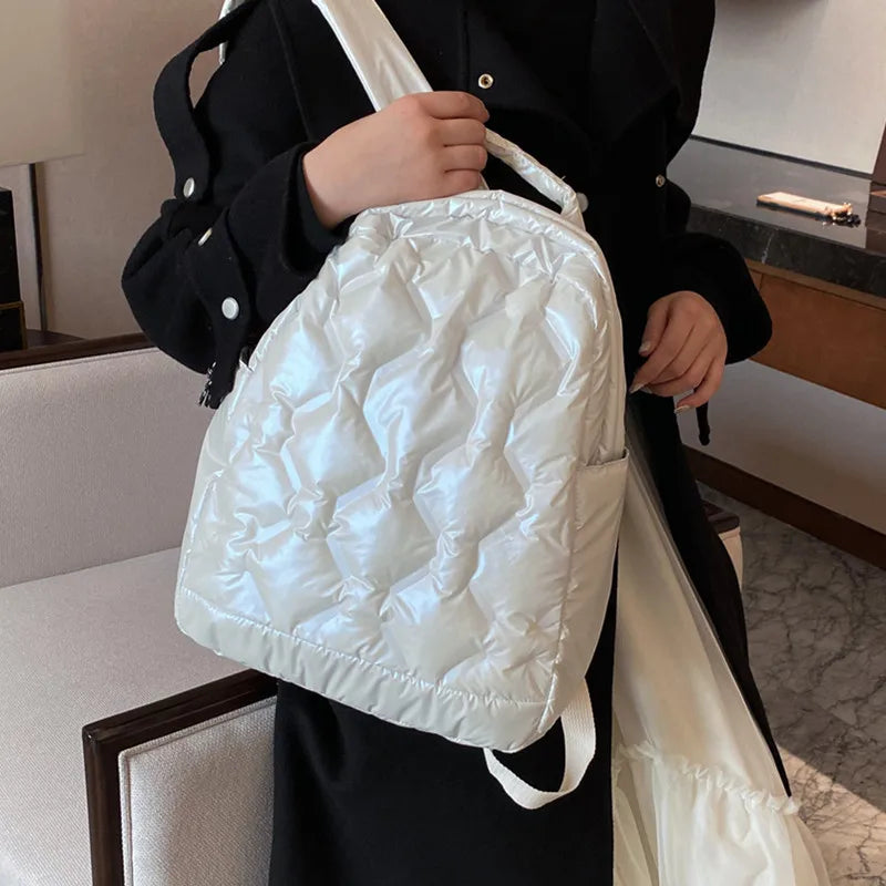 Women Winter Down Feather Padded Packback Large Multiple Pockets