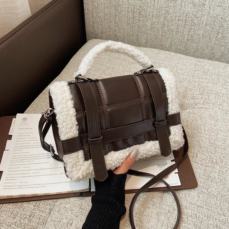 Women Winter Faux Fur Lalambswool Shoulder Crossbody Bag Handbag