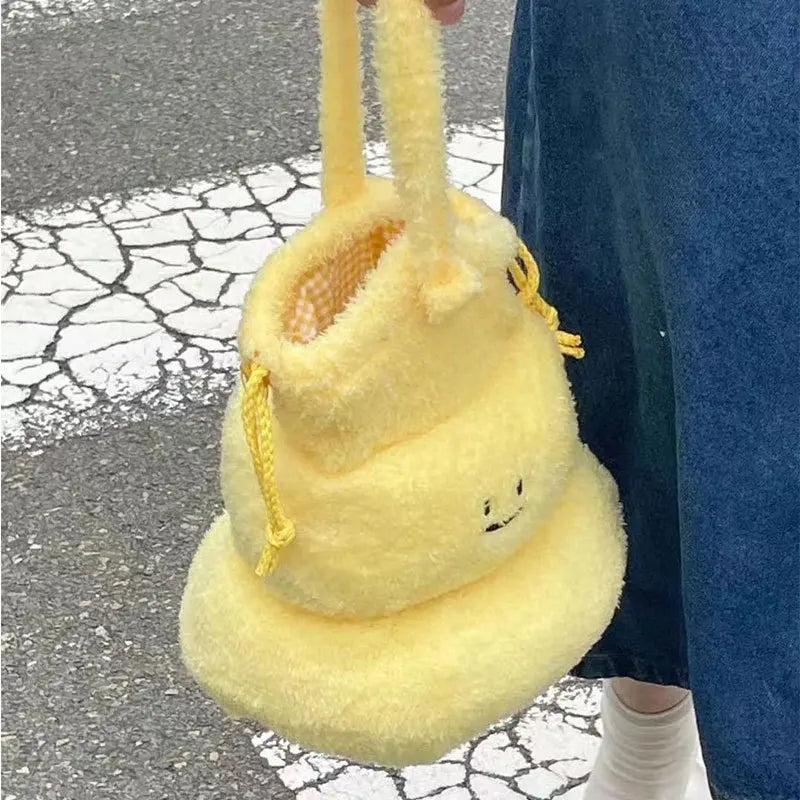 This adorable yellow mobile phone bag is perfect for girls. It can be worn as a handbag with its rope strap.