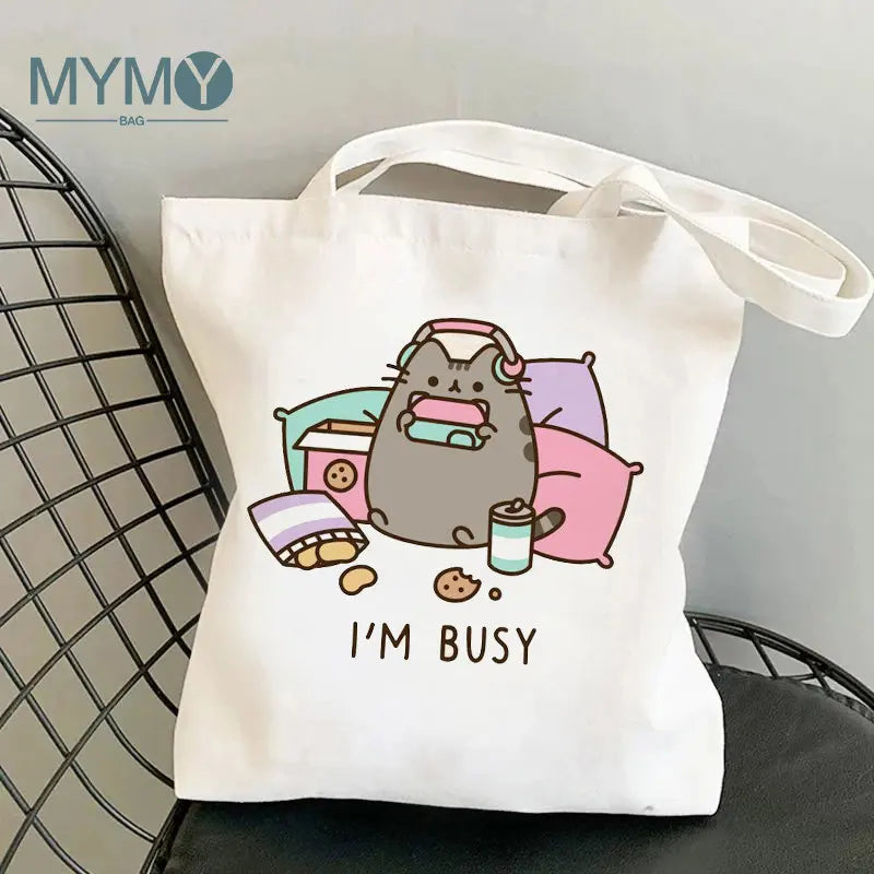 Women's Cartoon Shoulder Bag I'm Busy Casual Large Capacity Eco Shopping Bags