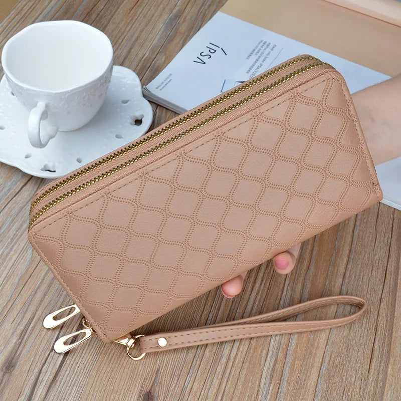 Women's Double Zipper Lady Handbag with Bright Diamond Pattern