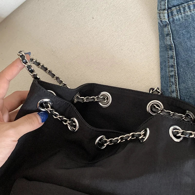 Women's Drawstring Chain Bucket Backpack Casual Travel Bags