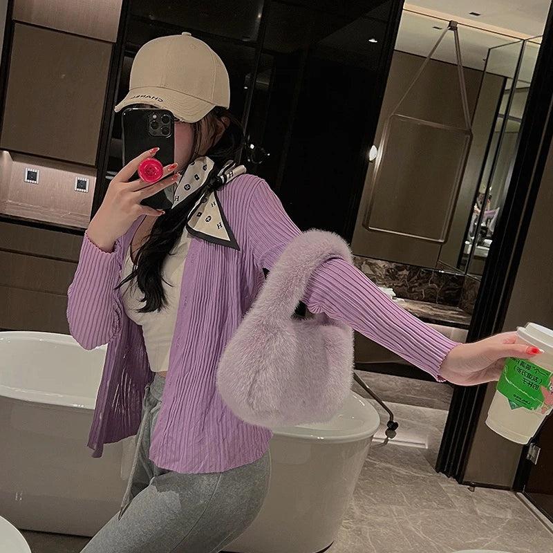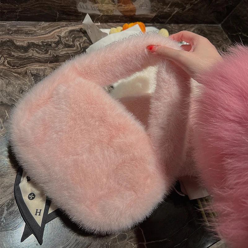 Women's Faux Fur Handbags Winter Ladies Furry Top-handle Bags Candy Female Tote