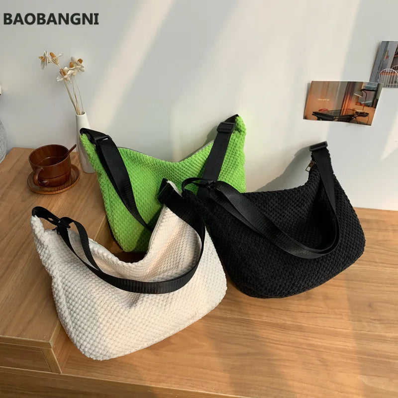 Stay cozy and stylish with this soft knitting handbag for women. Perfect for autumn and winter seasons, this crossbody bag offers ample space for all your essentials.