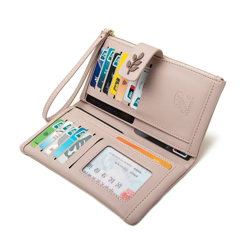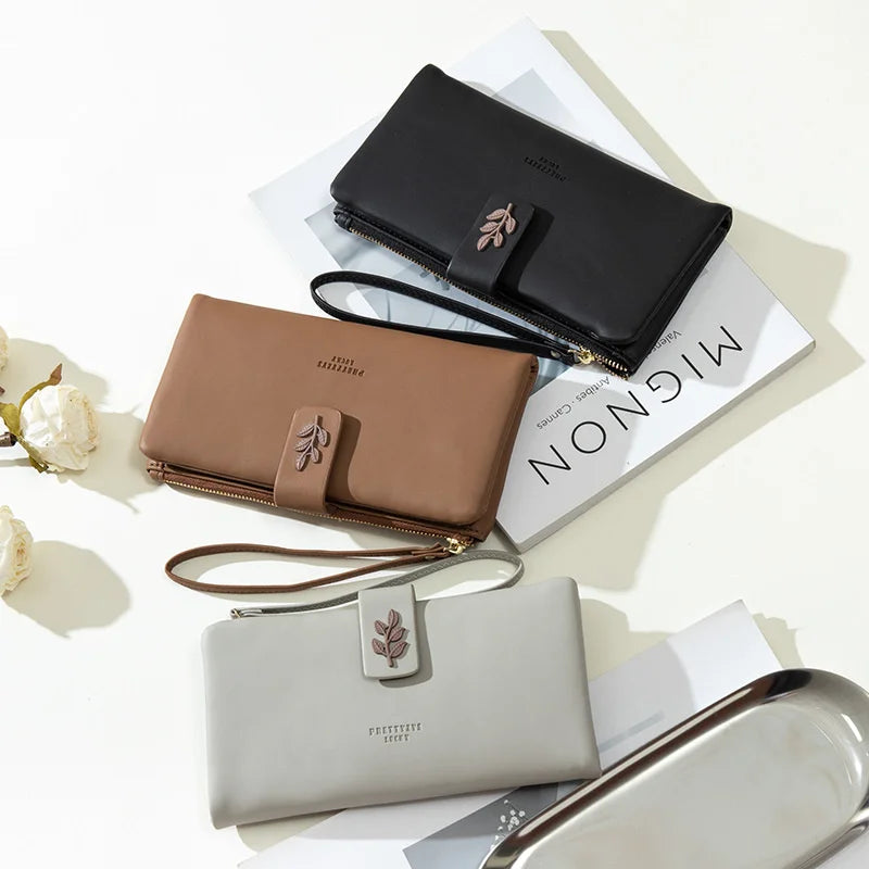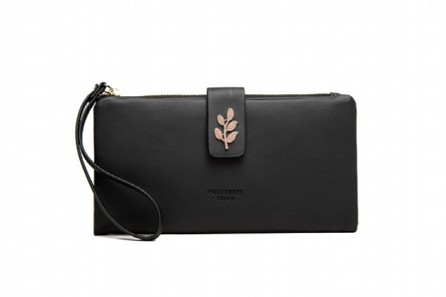 Keep your essentials organized in this small fresh leaf design handbag with a large capacity. It features a folding zipper design and a stylish leaf buckle.