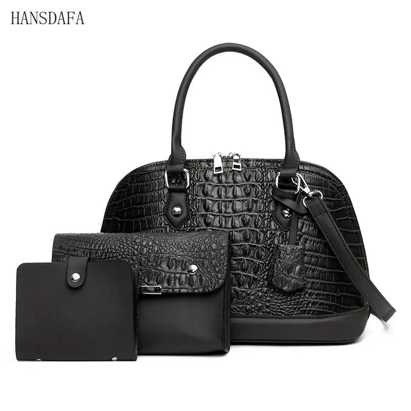 Womens Leather Shoulder Bags 3 Piece Set Large Capacity Tote Ladies Crossbody Ba
