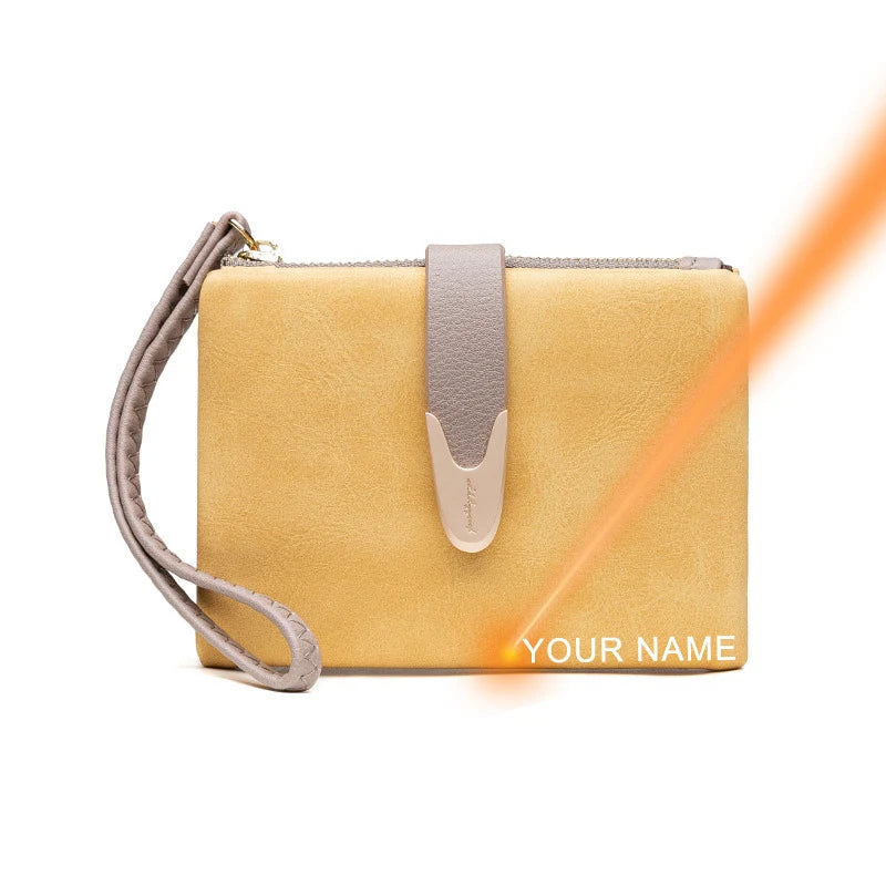 Women's Leather Wallet Engraved with Name Zipper Purse