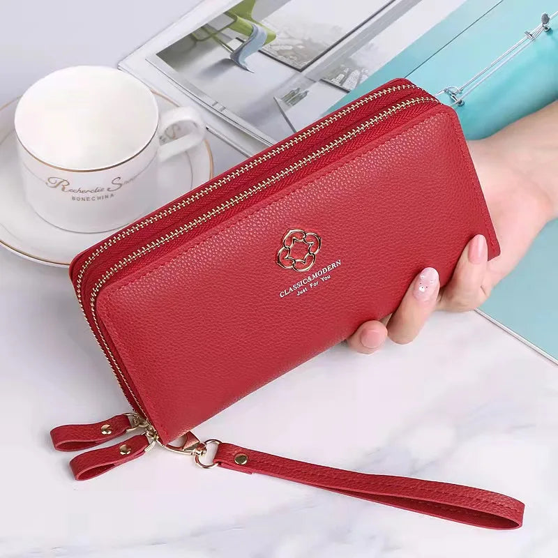Women's Long Clutch Bag Star Print Double Zipper Hand Strap Wallet 892