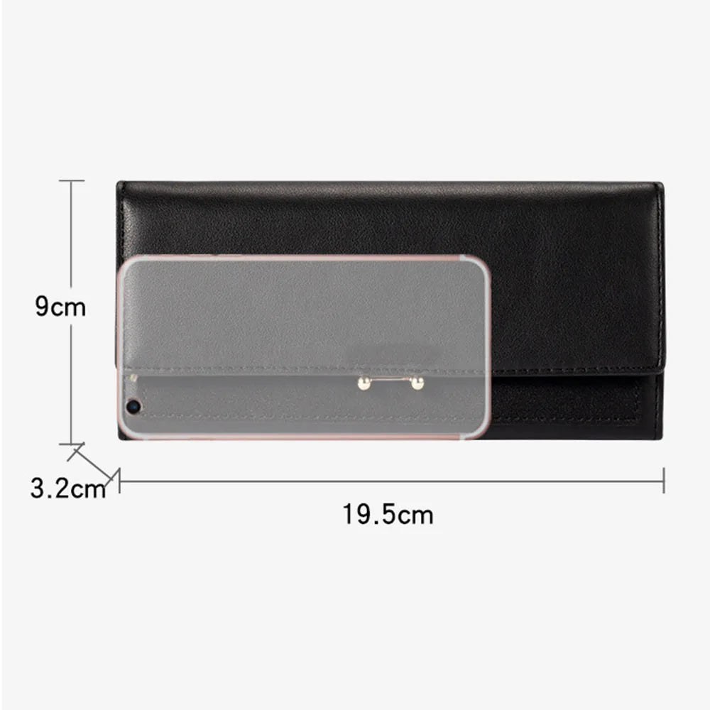 Women's Long Leather Wallet Large-Capacity Tri-Fold Clutch Purse
