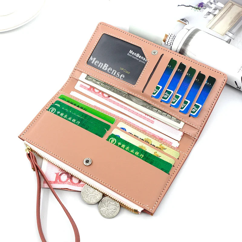 Stay organized with this stylish women's long zipper handbag wallet that can hold your mobile phone, cards, and cash. A perfect accessory for on-the-go convenience.