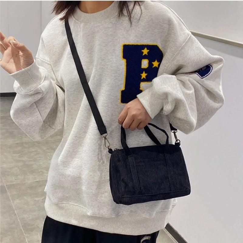 This stylish shoulder bag is made of high-quality corduroy and canvas material, perfect for casual everyday use. It features a convenient zipper closure and a versatile design that suits any outfit.