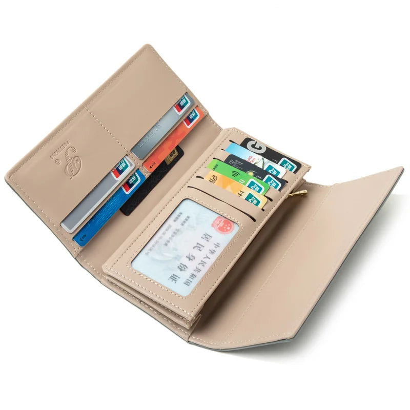 Stay organized with this large capacity three-fold handbag made of high-quality PU leather. It features a secure buckle closure and multiple compartments for your essentials.