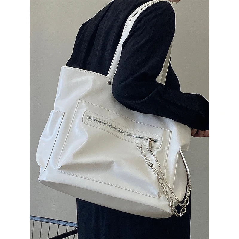 This women's shoulder bag is made of high-quality PU leather, featuring a large capacity and zipper outer pocket for convenience.