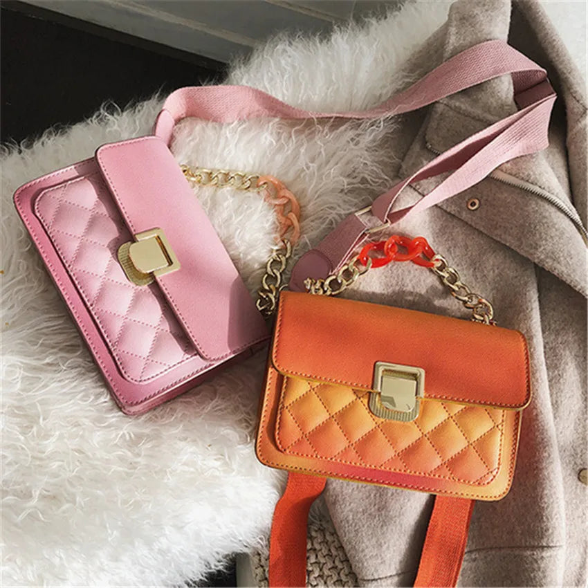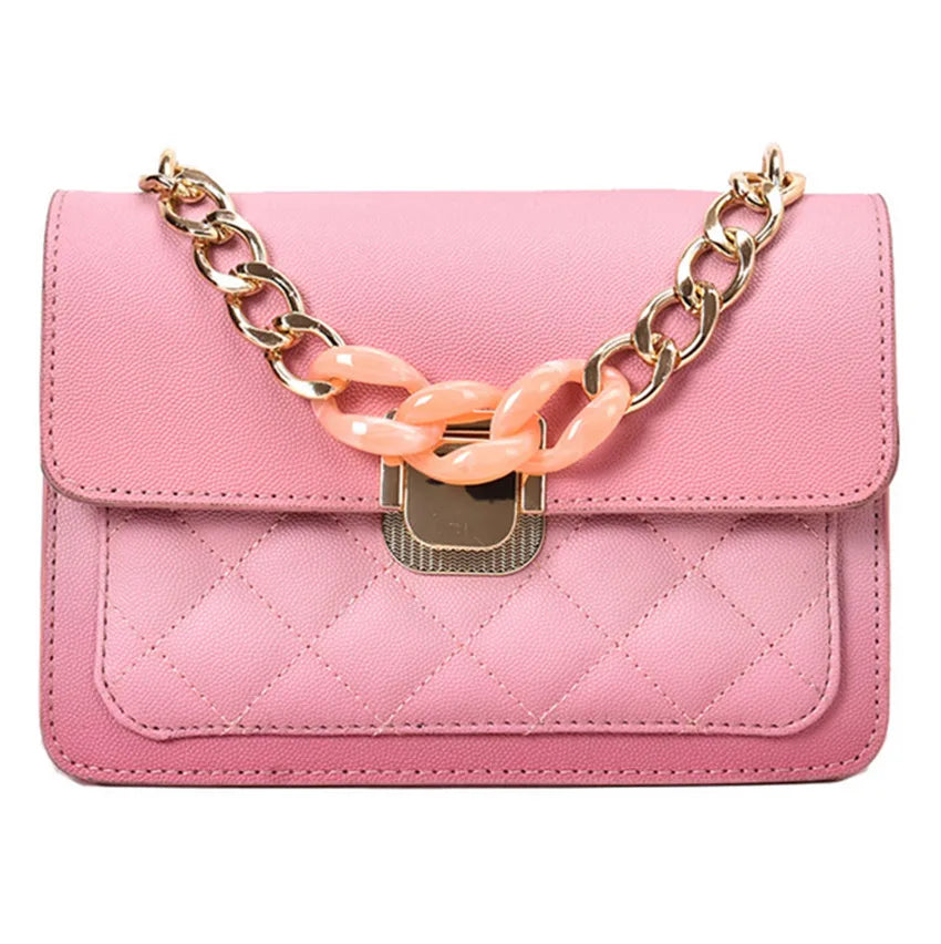 This stylish bag features a rhombic pattern with a chain strap, perfect for everyday use.