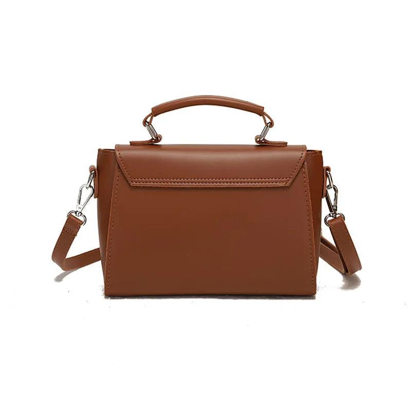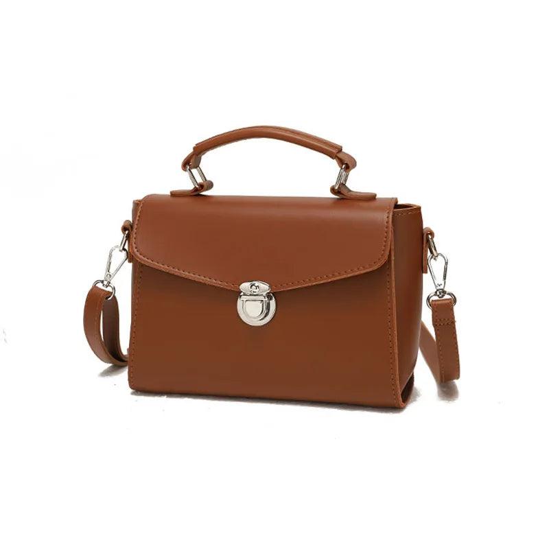 This small square bag features a college style design with a solid horizontal square shape. It can be worn as a shoulder or diagonal handbag.