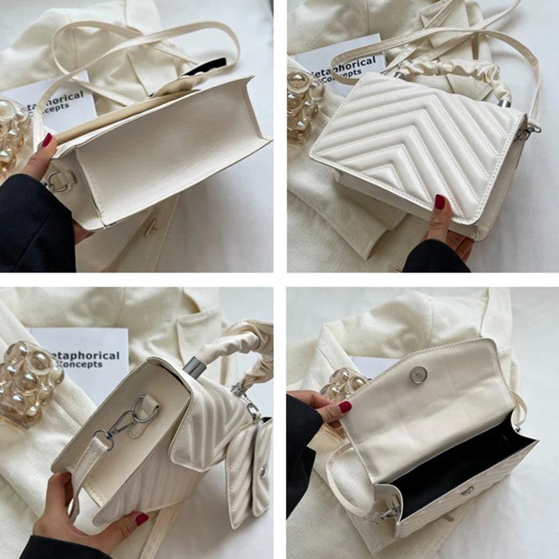 Women's Solid PU Leather Crossbody Shoulder Bag with Purse