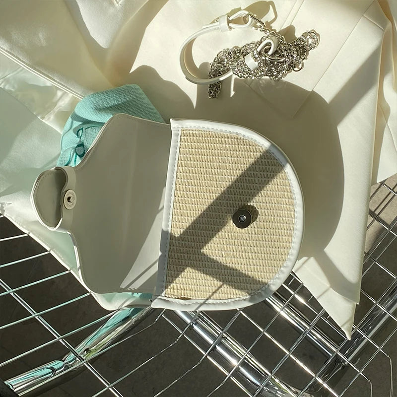 Women's Straw Shoulder Bag Chain Saddle Messenger Purse