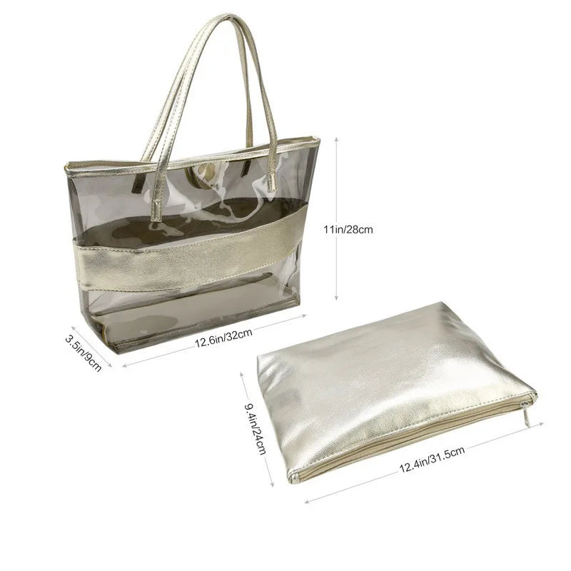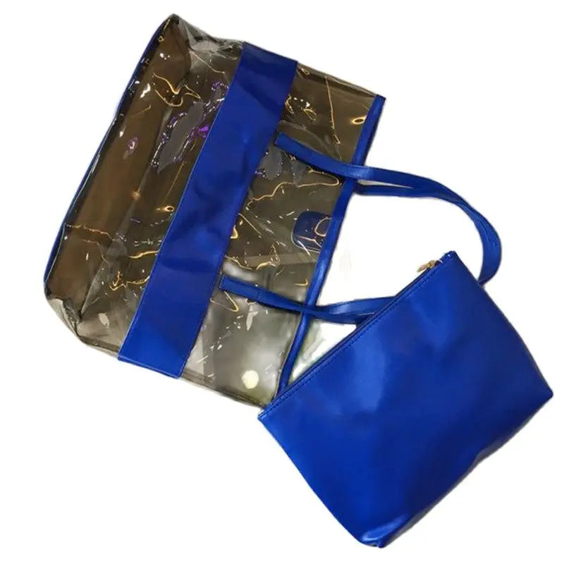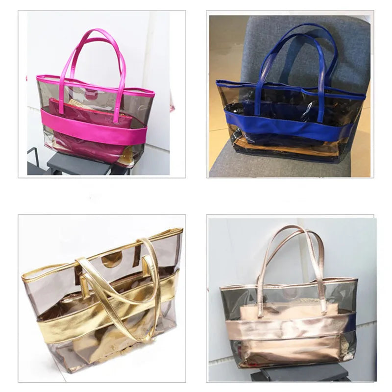 Women's Summer Bag Clear PVC Handbag PU Leather Beach Tote 2 Bags Set