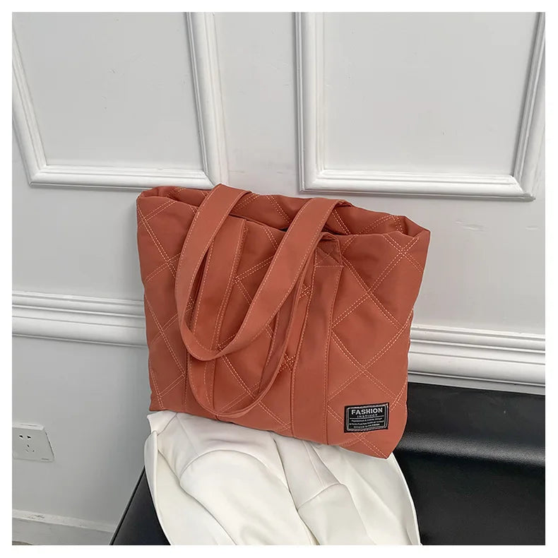 Stay stylish with this trendy tote bag featuring a unique lingge stitch design and made with high-quality down cotton material.