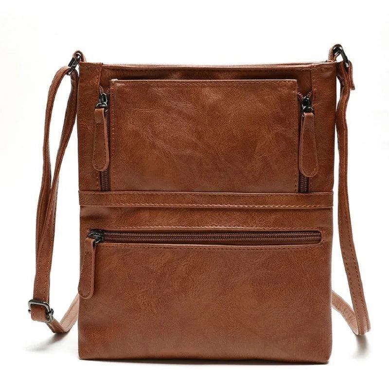 Stay stylish and organized with this double zipper messenger bag made from high-quality PU leather. Perfect for daily use or special occasions.