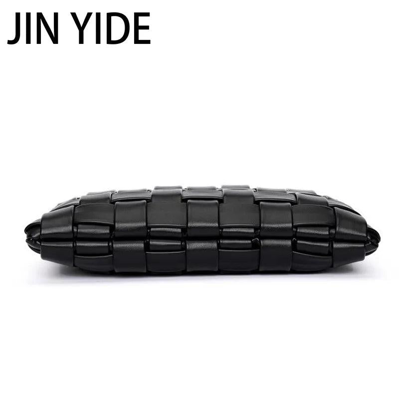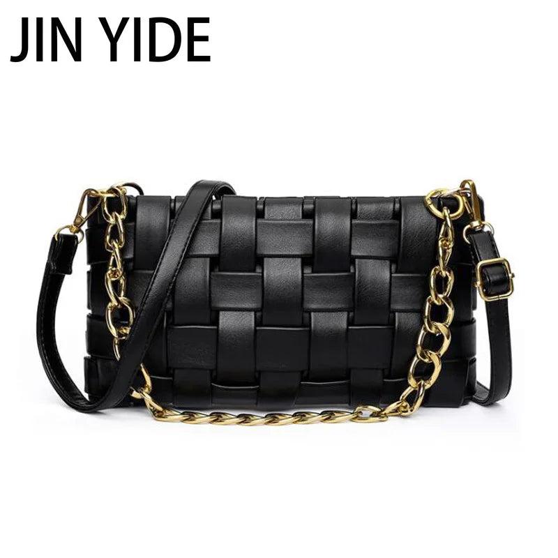 Woven Crossbody Bag Solid PU Leather Shoulder Messenger Chain Handbag